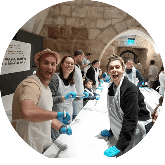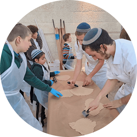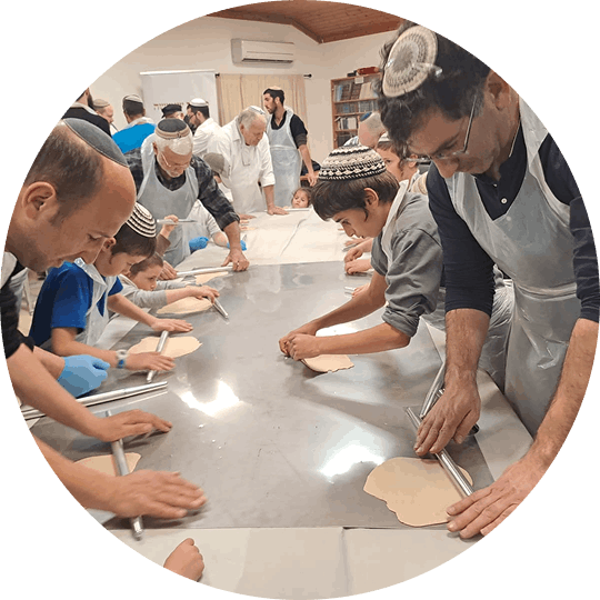 אנו מתמחים באירועי ענק של אפיית מצות בהשתתפות מאות אנשים.